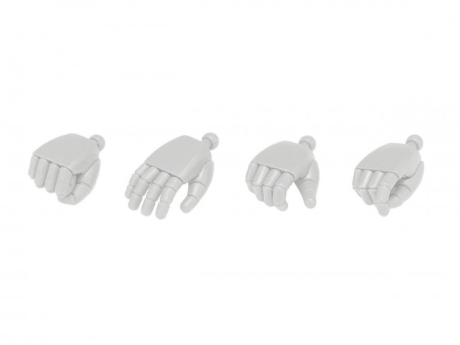 Round-Finger Type Recreating a Retro Aesthetic ・Assembly-type hand parts useful for detailing robot models 13?15cm in size. ・Round-finger type recreating a retro aesthetic while maintaining sharp, distinct features. ・Smooth sculpting not found in articulated fingers. By finely dividing the parts, we achieved uncompromising three-dimensional molding and shaping for each section. ・Available in two sizes: S and M. ・Offered in two colors: Gray and White. 【Important Notes】 ・This product is an 【Advanced User】 model requiring gluing and modification. ・Use commercially available [plastic model adhesive] or [instant adhesive] for assembly. ・Modify and adjust the base of each wrist to fit the kit being used. ・Modify and adjust the [Weapon-holding Hand] and [Gun-holding Hand] to fit the parts and grips you use. NEW F・Hand Round S White ■Option System Series ■Plastic Model Kit ■Requires adhesive (sold separately) ■Set Contents: [Closed Hand], [Flat Hand], [Weapon-holding Hand], [Gun-holding Hand] - 1 set each for left and right ■Product Material: PS ■Product Code: OP-742 (White) ※All sizes are approximate. Slight variations may occur. ※Images are of a development sample. Actual product may differ. Please note. ※Tools, materials, and parts other than the product shown in the explanatory photos are not included. (From Wave Website)