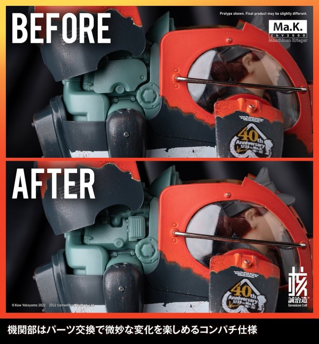 Painted finished model Scale] 1/16 Size] Approximately 140mm in height (not including antenna) Battery] CR2032 type x 1 (sold separately) Other] Sensor in the abdomen: LED light-emitting gimmick mounted Planning and production: Nuclear Seiji Zoukei A limited edition version of the popular pre-painted "1/16 Gustav" is now available. The overall color scheme is dark gray, with orange markings added to the upper body, resulting in a product with a significantly different color image. This orange marking is a special specification that changes color with changes in temperature. In addition, the markings commemorating the 40th anniversary and the aircraft number are marked in various places with tampo printing, adding to the appearance of this limited edition product. In addition to the movability of each joint common to the series, the contents of the standard version, such as the characteristic joint sealing fabric material, LED light-emitting gimmick of the sensor in the abdomen, and the hatch opening mechanism, have been taken over as they are. In addition, three decals (one new and two common to the standard version) are included for modelers' convenience. This product is a 40th anniversary limited edition. Don't miss this opportunity! Equipped with LED light-emitting gimmick on the abdomen sensor (CR2032 type 1 piece used / sold separately). Although the marking on the head has been tested and proven, the reaction may weaken if the product has been shipped for an extended period of time. We do not guarantee that the discoloring gimmick will be permanent.