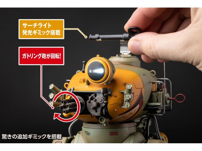 Painted finished model [Scale] 1/16 [Size] Approx. 210mm (height / not including antenna) [Batteries] Searchlight: SR621SW type x 2 (sold separately), Gatling gun: AAA batteries x 2 (sold separately) Planning and production: Nuclear Seiji Zoukei Can reproduce the three forms of "crate", "pack crate", "Custer" by replacing parts of each part. The main armament can be replaced with a total of three types of Gatling gun, long-barreled and short-barreled 75mm cannon. Equipped with LED searchlight gimmick (using 2 pieces of SR621SW type / sold separately). Gatling gun with rotating gimmick (uses 2 AAA batteries / sold separately). Legs are made of metal and have built-in click mechanisms at two joints. Open the hatch of each part to reproduce the internal details. Accessories: 75mm cannon (long barrel, two types of short barrel) / unit for night battle, antenna, etc. / decal 1 sheet