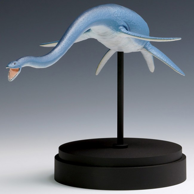 Dinosaurs, animals, etc. assembly kit/completed model A 1/35th scale plastic model of the familiar long-nosed dinosaur from the Showa era! In 2006, Futabasaurus suzukii was officially given a scientific name as a new species in a new genus, Futabasaurus suzukii. Under the supervision of Dr. Tamaki Sato, a fossil researcher of long-necked dragons and the godfather of the scientific name for the new genus and species, the kit has been sculpted to look as it did when it was alive. The kit is a snap-fit type that requires no glue and has a simple parts configuration, making it easy to assemble. The head is selectable from two types, one with the mouth open and the other with the mouth closed. The neck can also be assembled with the head facing forward or bent to the side. While the model is fixed, four posing patterns can be enjoyed by combining the head and neck. This product contains only one "Futabasuzukiryu". Futabasuki Ryu Plastic model kit 1/35 scale Snap-fit type without adhesive required. Display stand included. Supervisor: Tamaki Sato Cooperation: ActoW Inc. Product code:OG-031 The finished product in the photo is assembled and painted. The photo shows the product under development. The detail specifications may differ from the actual product. Please understand that the actual product may differ in detail. (From Wave website)
