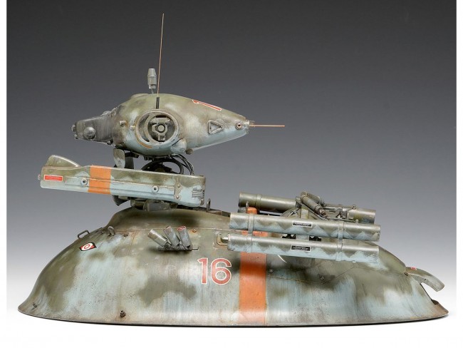 The Sturmvogel, Oscar's aggressive reconnaissance unit featuring a NINJA head and rocket launcher, makes its debut. The Oscar is an unmanned reconnaissance vehicle featuring a hover-driven armored chassis equipped with a Noise Spotter head unit for detection. Previously, we've released the later model equipped with a linear gun and the earlier model equipped with a laser gun. Now, we introduce a new aggressive reconnaissance variant of the Oscar featuring the NINJA head unit and rocket launchers. Its name is “Sturmvogel”. To enhance rear support capabilities, it features four additional homing rockets from the field modification kit. Its imposing silhouette is completed by the NINJA's high-performance search seeker mounted on the head. 【SK362 R6/N Panzer Spahwagen Sturmvogel】 ● Scale: 1/20 scale ● Size: Approx. 240mm (9.5in) total length ● Product Specifications: Plastic model kit ● Snap-fit type requiring no glue ● Included Items: Marking decals ● Appearance: “Maschinen Krieger” (C)Kow Yokoyama 2026