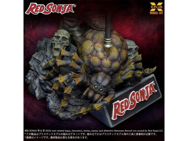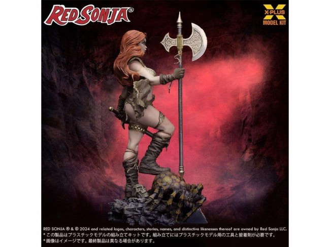 Red Sonia, the red-haired female warrior from the comic based on the world of “Conan the Hero,” is modeled in 1/8th scale in plastic! She is a top-notch female warrior who trained under a famous sword master and swears that she will never allow herself to be taken seriously by any man but those who are stronger than she is. She has a strong spirit and fighting ability that allows her to stand up against a multitude of enemies and monsters without fear. The model kit reproduces her strong and beautiful figure. The chainmail bikini-armor she wears in particular enhances her fierce yet glamorous charm. Note the detailed carvings on her huge axe and sword, as well as the texture of her belt and cape. On the diorama base, the giant spider she had been fighting against is sculpted lying on its side, showing the heat of the fierce battle. Red Sonja's face and eyes look as if she has not fought enough after defeating her enemy. Please pick up the figure and enjoy the dynamite proportions and the heat of battle! 1/8 Red Sonja Plastic Model Kit Product form Plastic model kit (unassembled, unpainted) Product Size Height: approx. 27cm Material/Specifications Material: HIPS RED SONJA (R) & (C) 2024 and related logos, characters, stories, names, and distinctive likenesses thereof are owned by Red Sonja LLC.